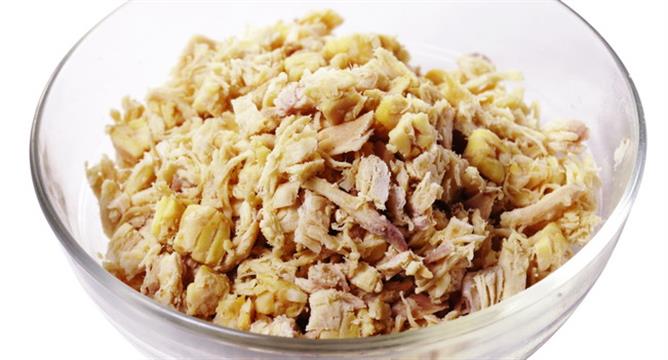 - Masukkan 100 gram dada ayam suwir dan 100 gram tempe cincang, masak hingga bahan matang. Angkat, sajikan setelah dingin.