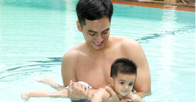 T : Dok, bayi saya (6 bulan) senang sekali berenang. Sebenarnya berapa lama ia boleh berenang dan berendam air dingin?