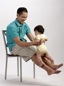 - Pegang kedua tangan bayi dan, secara perlahan, ayunkan kaki naik-turun sambil Anda menirukan suara kuda