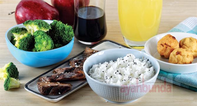 Daging, ayam, telur atau ikan cukup disediakan 1 potong saja. Kurang lebih 50-80 gram.