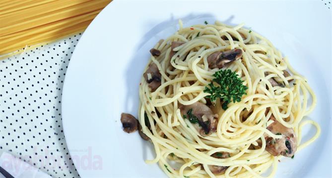 4. Campur spageti dengan jamur, taburi dengan irisan parsley. Sajikan.
