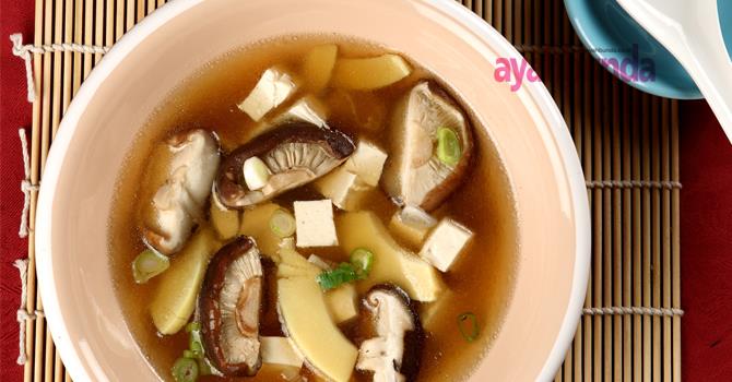 3. Masukkan tahu, rebung dan jamur, masak hingga matang.