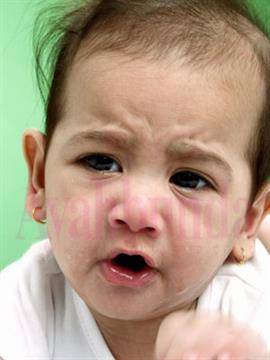 - Lalu suara bayi menjadi serak, batuknya kering dan melengking.
