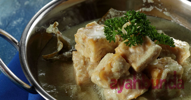 2. Tambahkan tempe, kentang, dan garam. Aduk rata. Tambahkan santan, masak sampai seluruhnya matang. Angkat.