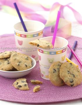 4. Masukkan cokelat chip, aduk rata lalu bentuk adonan menjadi bulat pipih.