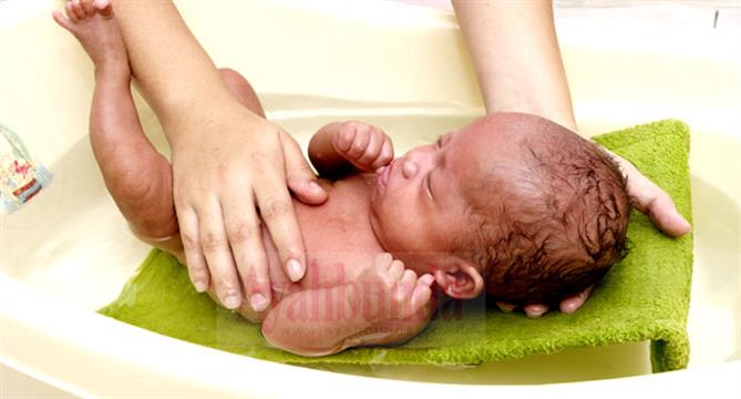 Memandikan bayi baru lahir (usia 0-3 bulan). Untuk bayi yang tali pusatnya belum lepas, perlu perhatikan esktra. Karena, tali pusat yang selalu basah berisiko terkena infeksi. Bersihkan tubuh bayi yang tali pusatnya belum lepas dengan menyeka tubuhnya menggunakan air hangat bersuhu sekitar 29C. (me)