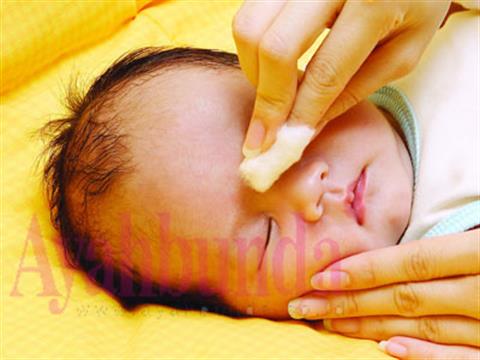 - Agar bayi bisa bernapas lega-khususnya saat minum susu atau sebelum tidur-keluarkan cairan hidungnya dengan penguapan, menepuk-nepuk punggung bayi dalam posisi telungkup di paha Anda, atau disedot menggunakan alat penyedot lendir di hidung.