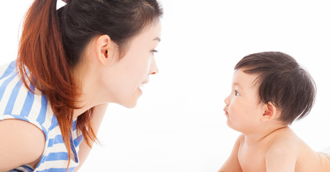 a. Tengkurapkan bayi. Lalu, Anda ikut tengkurap dengan posisi saling berhadapan dengannya. Supaya ia semakin antusias, tunjukkan berbagai ekspresi wajah Anda dari yang lucu hingga gembira. Cara ini selain akan melatih otot leher, ia juga belajar mengenal variasi mimik wajah yang Anda tunjukkan.