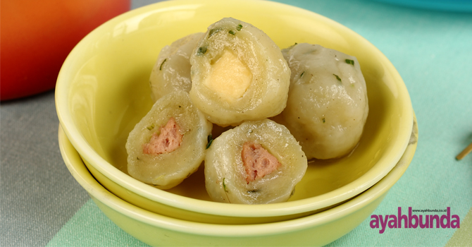 - Rabus air dalam panci hingga mendidih. Masukkan bulatan adonan ke dalam air mendidih, masak hingga adonan mengapung (artinya matang). Angkat. Tiriskan.