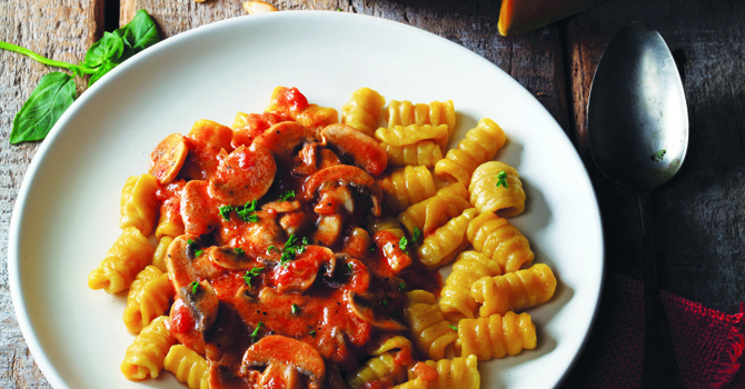 Jamur sering disebut sebagai alternatif pengganti daging merah karena kandungan proteinnya sangat tinggi. Coba olah jamur dengan gnocchi yang terbuat dari labu parang, agar si kecil tertarik melahapnya.