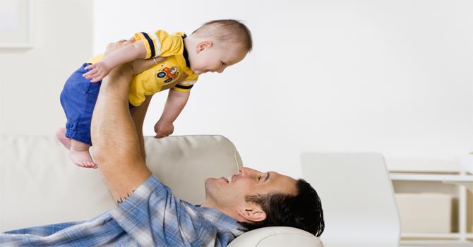 - Dari posisi telentang, coba Anda angkat tubuhnya dengan menarik kedua tangannya (khusus bagi bayi yang otot lehernya sudah kuat). Pura-puranya, bayi sedang sit-up!