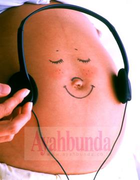 - Memutarkan aneka jenis musik kepada janin, disarankan musik tersebut memiliki rentang nada cukup lebar, mulai nada rendah hingga tinggi.