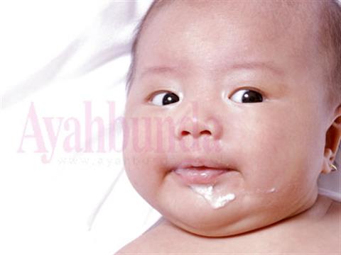 GUMOH. Setelah disusui, dari mulut bayi biasanya akan keluar ASI yang sudah ditelan kurang dari 10 ml. Inilah yang disebut gumoh. Cairan ini dikeluarkan dengan cara mengalir dari mulut bayi, tanpa disertai kontraksi otot dinding perut. Gumoh merupakan proses alami untuk mengeluarkan udara yang tertelan saat bayi minum ASI. Umumnya terjadi pada bayi yang baru berumur beberapa minggu sampai beberapa bulan, dan akan hilang dengan sendirinya sejalan dengan bertambahnya umur bayi.