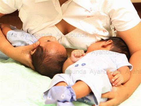 - Bila salah satunya adalah balita Anda, biarkan dia mencari sendiri posisi yang nyaman untuk menyusu bersama bayi Anda