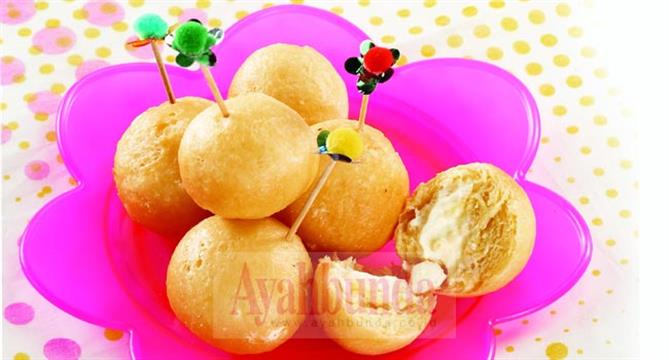 - Isi bagian tengah donat dengan vla susu menggunakan suntikan khusus kue berbentuk corong.