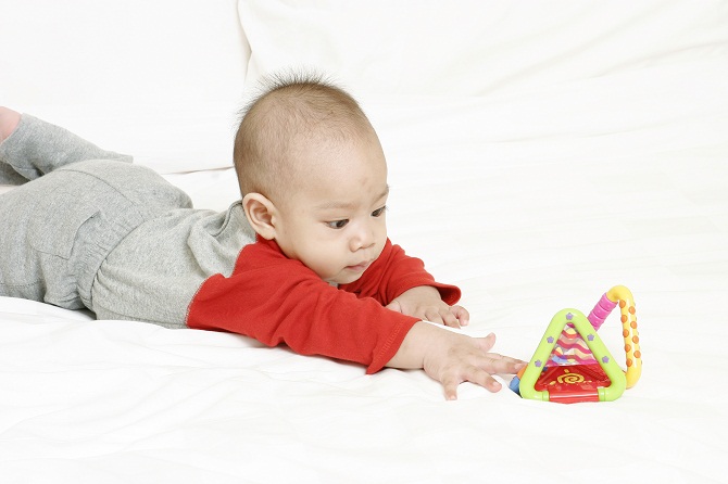 Dialami bayi yang sedang aktif bergerak atau bermain. Dapat terjadi ketika bayi sedang berada di tempat tidur ataupun di lantai.